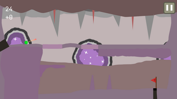 CaveGolf takes place in exotic cave-like environments. Level types include sandy caves, amethysts and green caves with a lot of plants. Level types have their own objects, layouts and even mechanics like speed zones and falling stalactites.